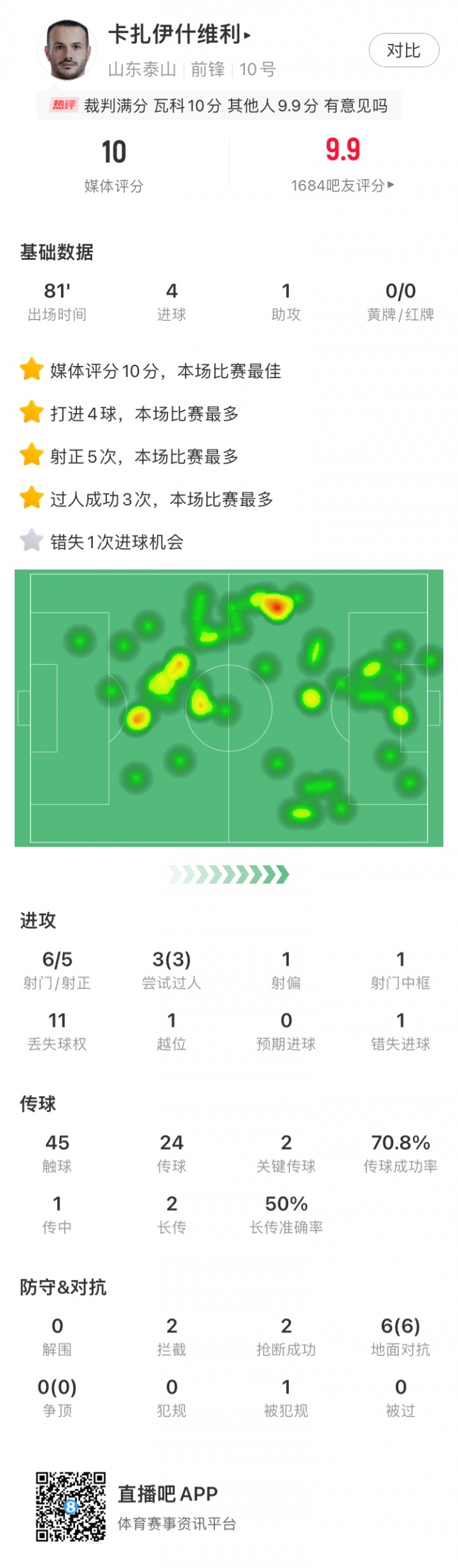 本轮唯一提名球员——卡扎伊什维利!他在对阵国安的关键战役中独进四球并送出一次助攻,交出满分答卷!