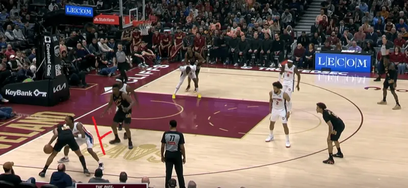 当对位中锋时,泰森主导拉开单侧的二人转掩护发起,埃利斯的突破吸引斯图尔特回收,这给了泰森外弹利用脚步优势惩罚对手的机会。